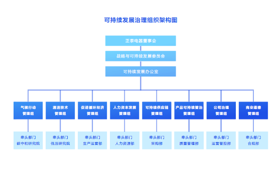 公司治理上,正泰电器建立董事会直管的三级可持续发展组织架构,确保可持续发展战略有效落地。强化内部审计与合规建设,同时加强员工合规培训,提升员工反不正当竞争意识,保障企业健康稳定发展。