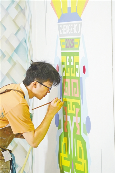 参赛选手绘制带有“郑州”元素的莲鹤方壶图案 郑州日报记者 马健 摄