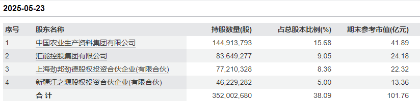 截至5月23日,劲邦劲德持有亚钾国际7721.03万股,持股占比为8.36%,期末参考市值为22.32亿元。