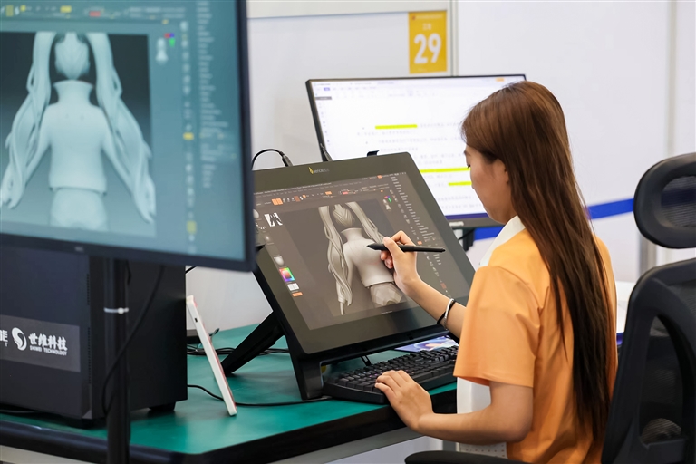 9月21日,参赛选手在进行3D数字游戏艺术项目的比赛。河南日报记者 王铮 摄